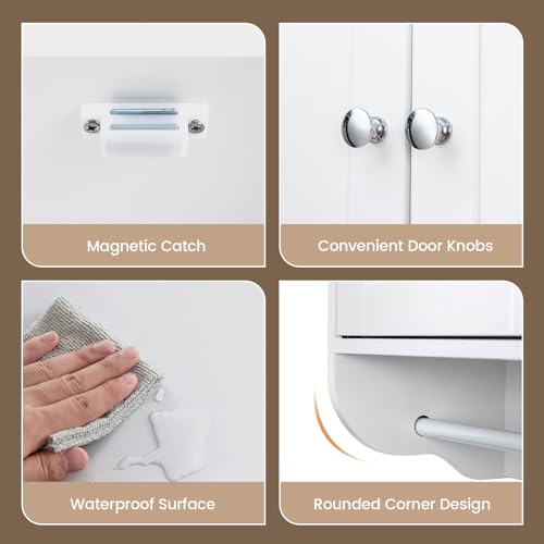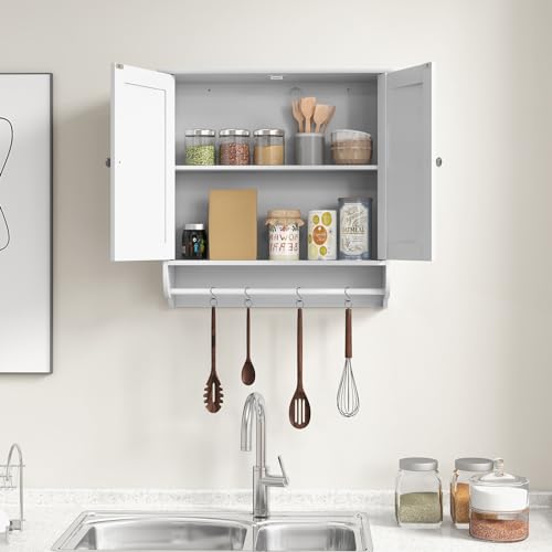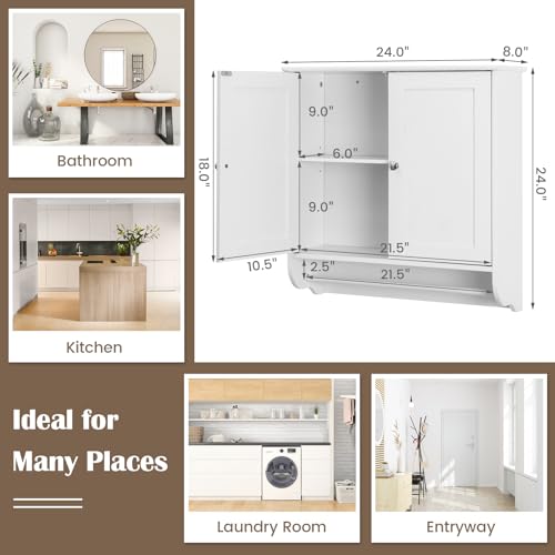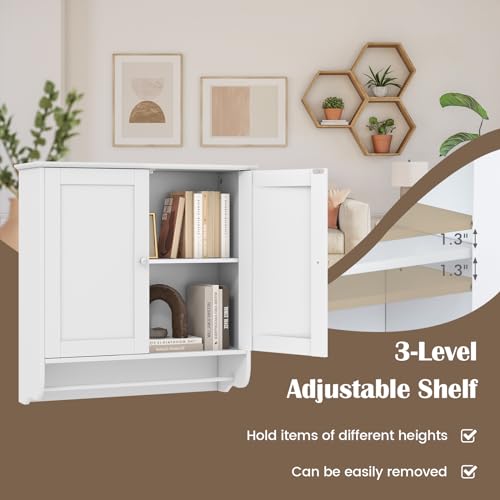 COSTWAY - خزانة حمام مثبتة على الحائط، خزانة تخزين فوق المرحاض مع قضيب منشفة، بابين ورف قابل للتعديل، خزانة أدوية موفرة للمساحة للحمام والمطبخ من كوستواي (أبيض)