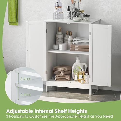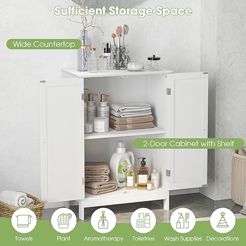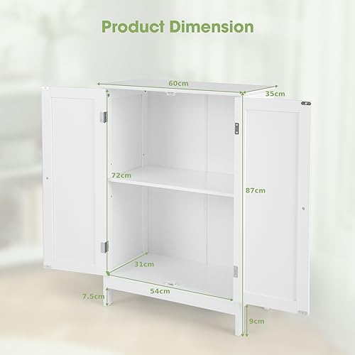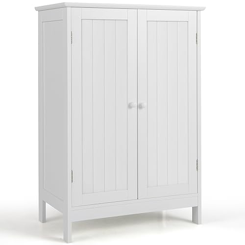 COSTWAY - خزانة أرضية للحمام من كوستواي، خزانة تخزين قائمة بذاتها بأرفف قابلة للتعديل، وحدة تنظيم جانبية خشبية للحمام وغرفة المعيشة والردهة (أبيض)