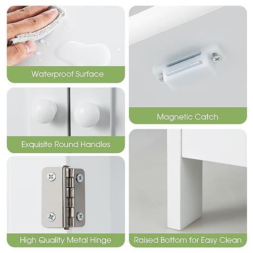 - 【سهولة التجميع وتفاصيل سهلة الاستخدام】 بفضل التعليمات المفصلة والأجزاء المرقمة، يمكن تجميع وحدة تخزين الحمام ذات البابين هذه في وقت قصير. علاوة على ذلك، فإن المقابض الدائرية الرائعة والأقفال المغناطيسية والمفصلات المعدنية الممتازة تساعدك على فتح وإغلاق أبواب الخزانة بسهولة.
