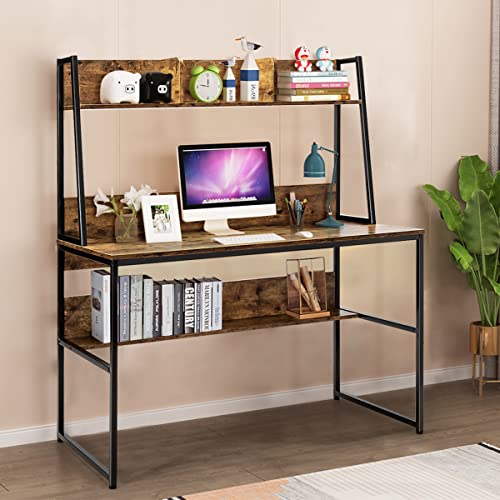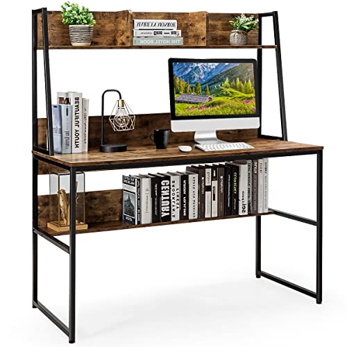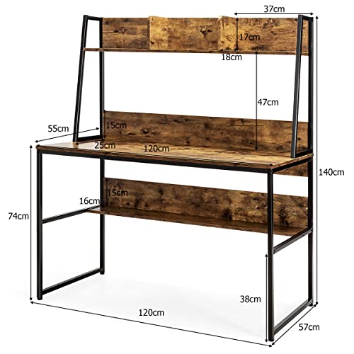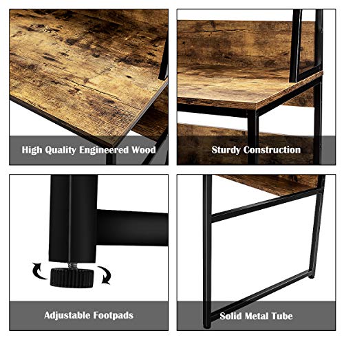 COSTWAY - كوستواي مكتب كمبيوتر مع رف تخزين للكتب طاولة لابتوب 2 في 1 منزلي للعمل والدراسة والكتابة لغرفة النوم وغرفة المعيشة عتيق