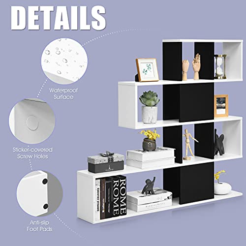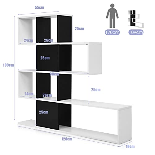 COSTWAY - وحدة أرفف كتب خشبية عصرية للزوايا قائمة بذاتها للغرف للمنزل والمكتب وغرفة المعيشة وغرفة النوم من كوستواي (أبيض+أسود)