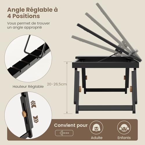- 【ارتفاع وصينية مائلة】يمكن تعديل ارتفاع مكتب اللاب توب في نطاق 20 سم إلى 26.5 سم عن طريق ربط الإبزيم على الساقين. بالإضافة إلى ذلك، تحتوي على 4 أوضاع إمالة للصينية. يساعدك المغناطيس المتين على تثبيت الصينية بأمان عندما تكون مسطحة.