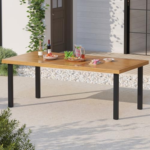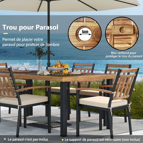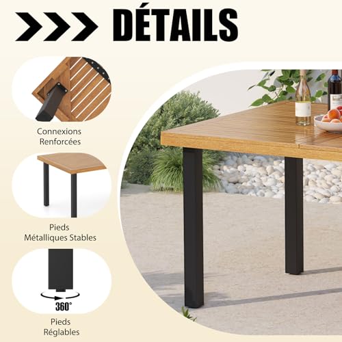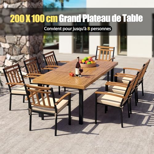 COSTWAY - كوستواي طاولة حديقة 200 سم لـ 8 اشخاص، طاولة خارجية من خشب الاكاسيا مع فتحة مظلة بقطر 5 سم وارجل معدنية بتصميم لاتيه، مستطيلة للحديقة والشرفة