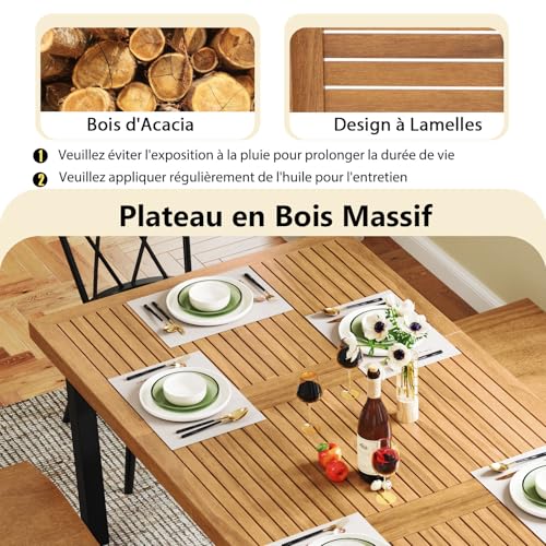 - 【سطح من خشب الأكاسيا الصلب】تتميز طاولة الطعام هذه بجزء علوي من خشب الأكاسيا، تجمع بين الجاذبية الطبيعية والمتانة. يمنع التصميم الشرائح تراكم الماء، مما يجعل الطاولة مريحة للبيئات الخارجية. ملاحظة: يرجى وضع الزيت بانتظام للصيانة.