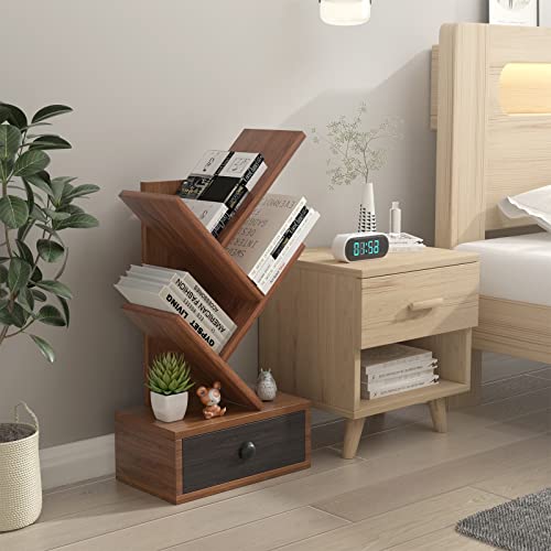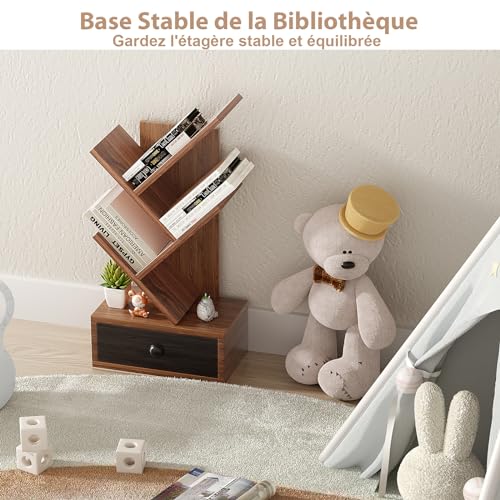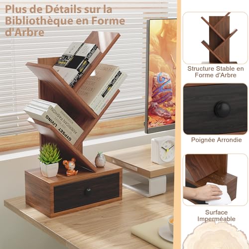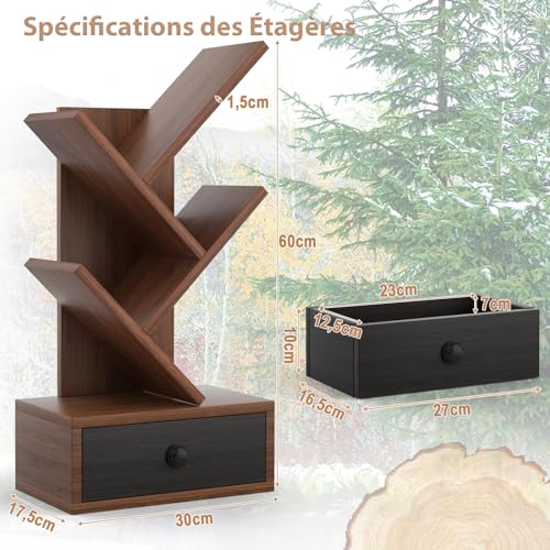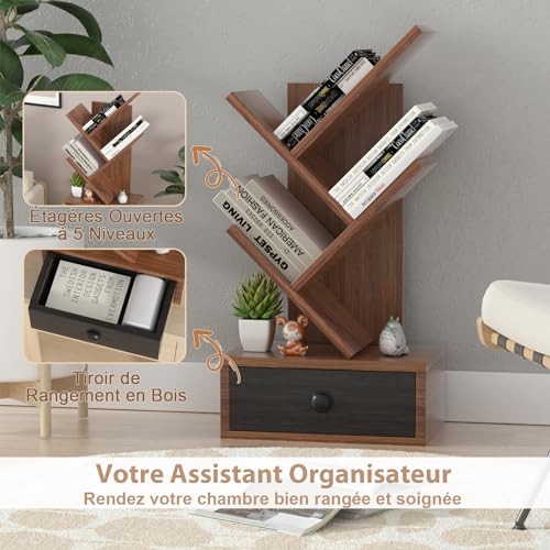 COSTWAY - مكتبة كتب صناعية من 5 طبقات على شكل شجرة كوستواي وحدة تخزين مع درج صغير لأقراص CD والمجلات والكتب بلون بني ريفي