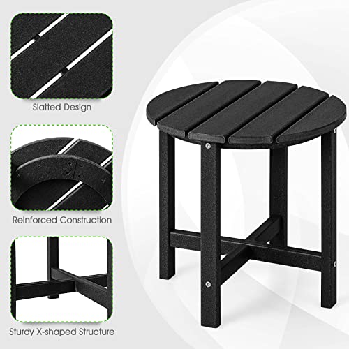 COSTWAY - كوستواي طاولة جانبية من اديرونداك البولي ايثيلين عالي الكثافة مناسبة لجميع الاحوال الجوية قهوة مربعة - دائرية صغيرة للفناء والشرفة والفناء الخلفي والحديقة وجانب حمام السباحة اسود .