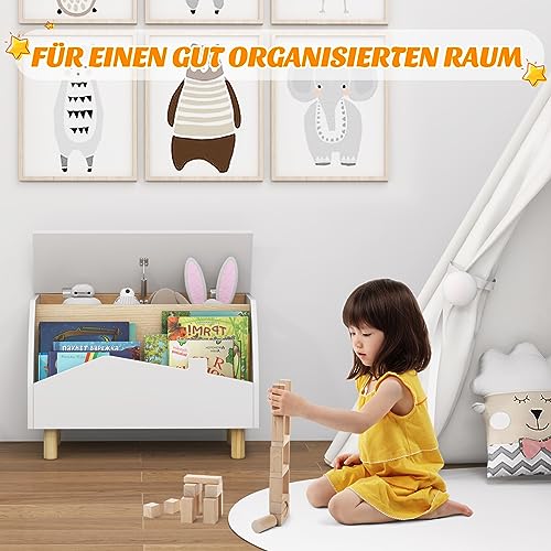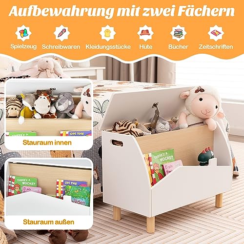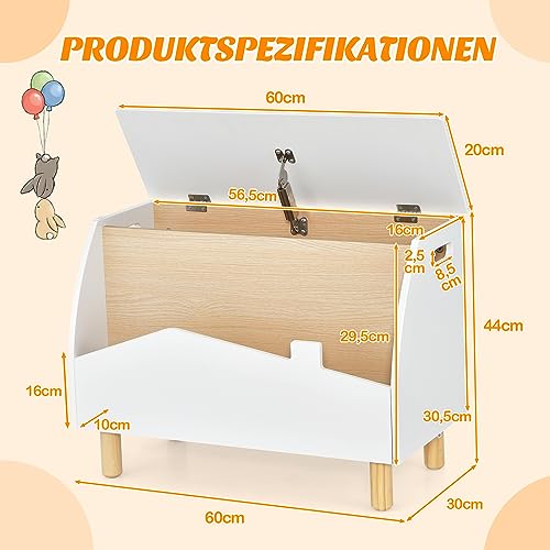 COSTWAY - كوستواي صندوق العاب خشبي مع رف، صندوق العاب مع غطاء، صندوق تخزين العاب لالعاب الاطفال، تخزين العاب لغرفة الاطفال وغرفة اللعب، 60 × 30 × 44 سم (ابيض)