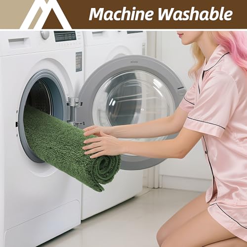 COSY HOMEER - سجاد حمام سميك للغاية للحمام من كوزي هومر - سجادات حمام مضادة للانزلاق من خيوط مخملية ناعمة شاغي قوية 100% من البوليستر ميركو لغرفة المعيشة وغرفة النوم ماصة للماء (اخضر، 40.6 × 60.9 سم)
