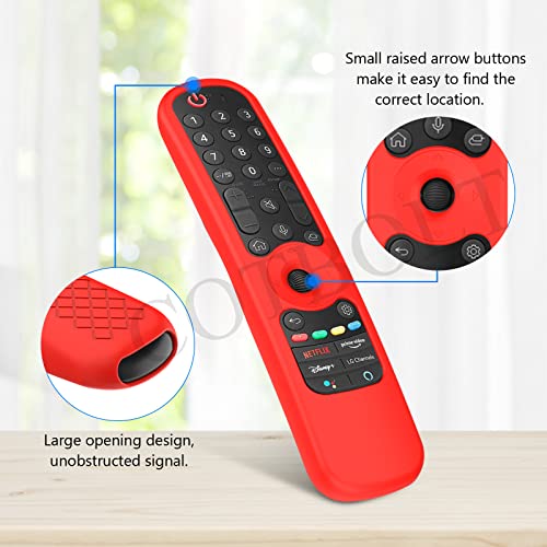Cotbolt - جراب حماية من السيليكون متوافق مع جهاز التحكم عن بعد موديل ال جي ماجيك AN-MR21GA MR22GA MR23GA، جراب مضاد للصدمات لريموت تلفزيون ال جي الذكي 2021 2022 2023 (جهاز التحكم عن بعد غير متضمن) (أحمر