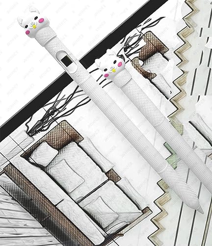 COTEetCI - جراب (1-A) من السيليكون بتصميم كيتي من كوتيتكي لقلم ابل الرقمي، لون أبيض، من كوتشي، لحاسوب لوحي