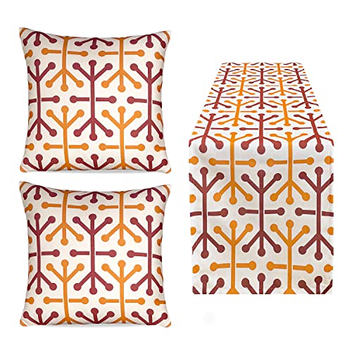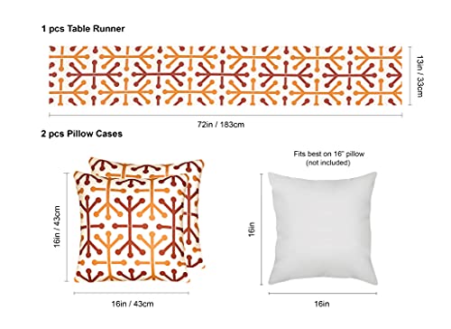 Cotinga - حزمة مفرش طاولة كوتينجا مع 2 كيس وسادة مزخرف، 13 × 72 و16 × 16 (برتقالي بني/عاجي)
