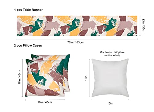 - محتويات العبوة: تتضمن هذه الحزمة مفرش طاولة واحد (13 عرض × 72 طول) و2 غطاء وسادة مزخرف (16 انش × 16 انش). يناسب بشكل أفضل حشوات الوسادة مقاس 16 انش، غير متضمنة.