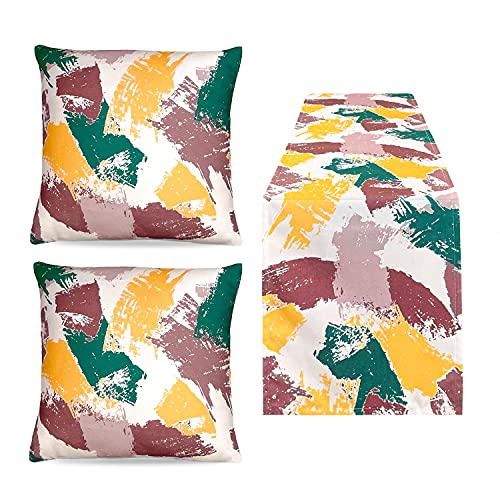 Cotinga - كونتينغا مجموعة مفرش طاولة مع 2 كيس وسادة مزخرف (13 × 72، 16 × 16، اصفر واخضر بني/عاجي)