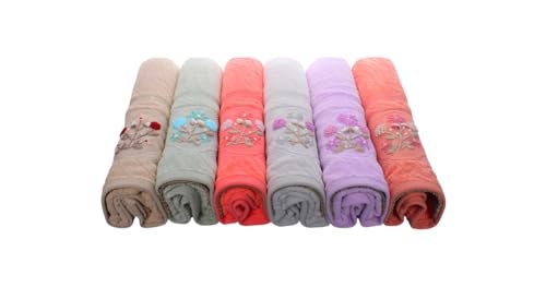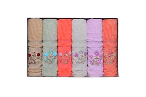 Generic - طقم مناشف حمام قطنية بتصميم زهور، 6 قطع، 50 × 100 سم - متعددة الالوان - 123