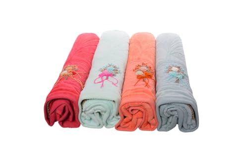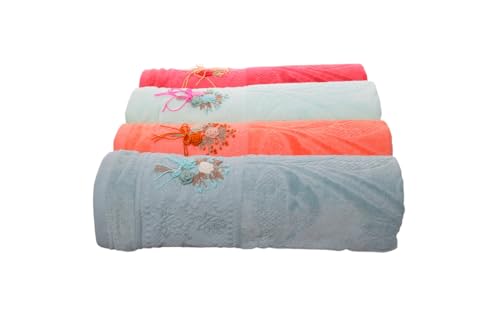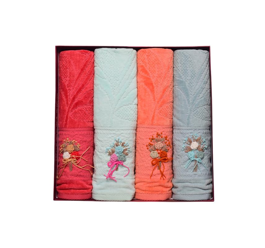 Generic - طقم فوط حمام قطنية بتصميم زهور، 4 قطع، 60 × 120 سم - متعددة الالوان - 182