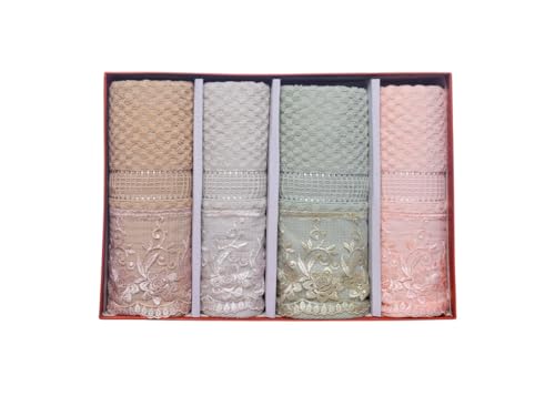 طقم فوط حمام قطنية بتصميم زهور، 4 قطع، 60 × 120 سم - متعددة الالوان - 235