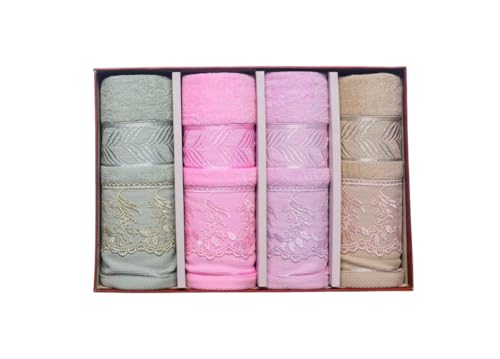 Generic - طقم فوط حمام قطنية بتصميمات متعددة، 4 قطع، 50 × 100 سم - متعددة الالوان - 175
