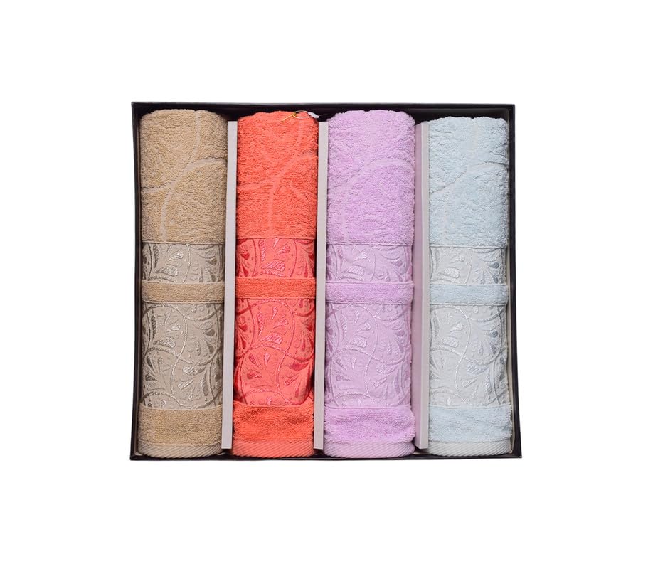 Generic - طقم فوط حمام من القطن بتصميمات متعددة - 4 قطع متعددة الألوان - مقاس 60 سم × 1.20 م