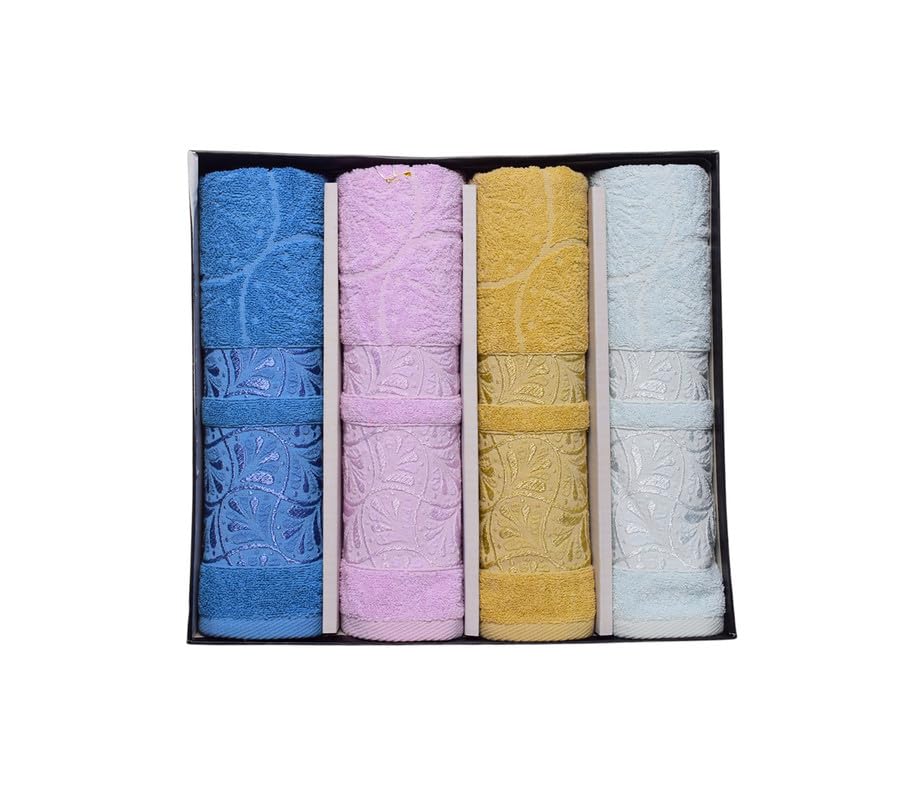 Generic - طقم فوط حمام قطنية بتصميمات متعددة، 4 قطع، 60 × 120 سم - متعددة الالوان - 175