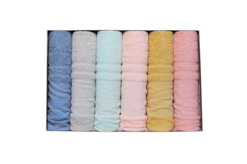 Generic - طقم مناشف حمام قطن بتصميم بسيط، 6 قطع، 50 × 100 سم - متعددة الالوان - 135