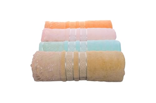 Generic - طقم فوط حمام قطنية بتصميمات مخططة، 4 قطع متعددة الألوان، بمقاس 60 × 120 سم، 212