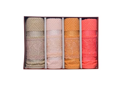 Generic - طقم مناشف حمام قطنية بتصميم جذع شجرة، 4 قطع، 60 × 120 سم - متعددة الالوان - 231