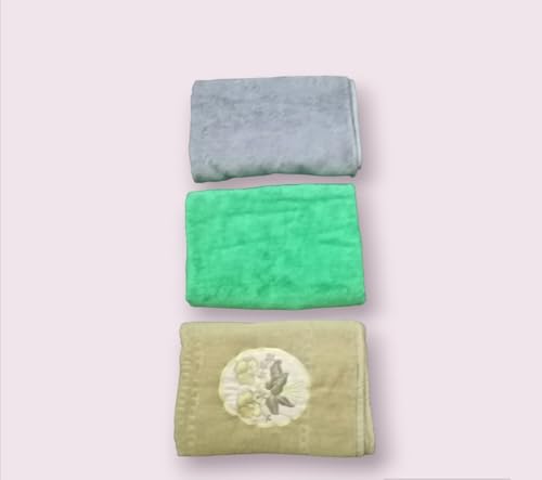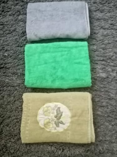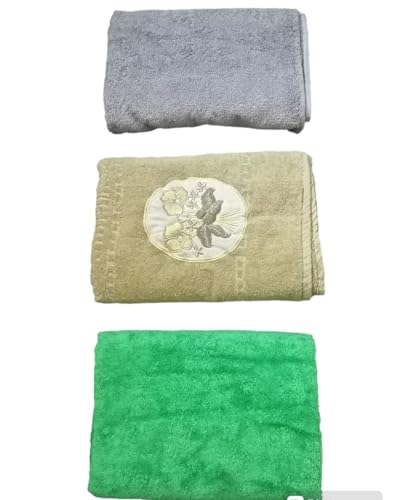 Generic - مناشف حمام قطنية، 3 قطع، ألوان متعددة (أبيض، أخضر، بيج)، بتصميم زهور