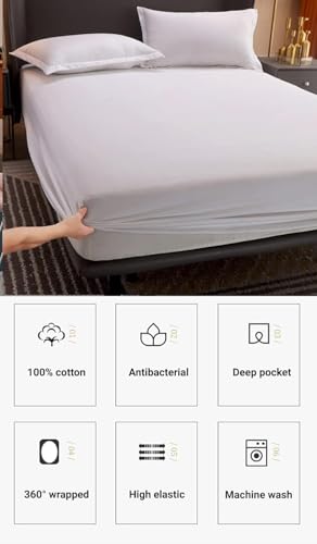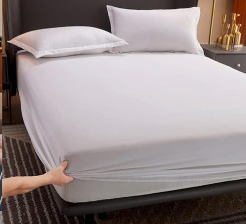 Generic - ملاءة سرير قطن 1.6 م × 2 م ناعمة ومزودة بمسامات للتهوية ومريحة وأنيقة من 3 قطع، أزرق فاتح (أبيض)