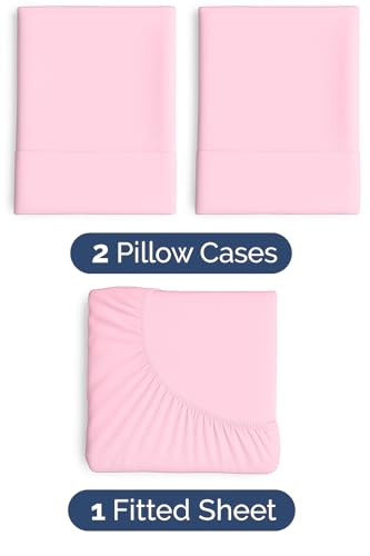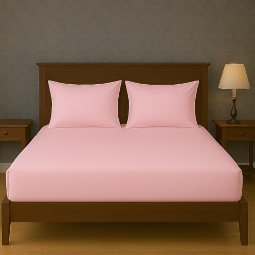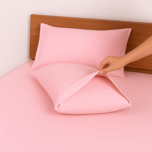 Generic - ملاية سرير من القطن مع كيسي مخدة، عبوة من 3 قطع - طقم ملايات سرير بلون وردي ومقاس 1.6 × 2 م