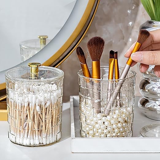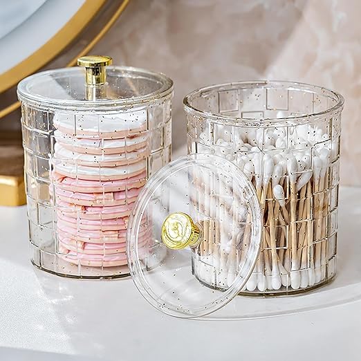 Generic - علبة أعواد القطن، منظم حمام من الاكريليك مع غطاء، تخزين وسادات قطنية، شفاف، للمرحاض والحمام وغرفة النوم (1)