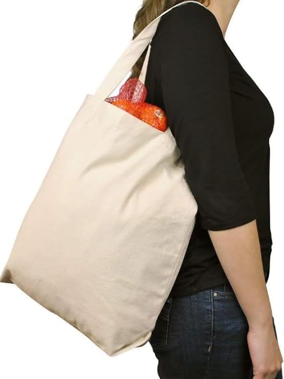 Generic - شنطة كتف من قماش قطني مع حزام كتف مزدوج للنساء والبنات، قابلة لإعادة الاستخدام للسفر والتسوق والبقالة، لون سادة