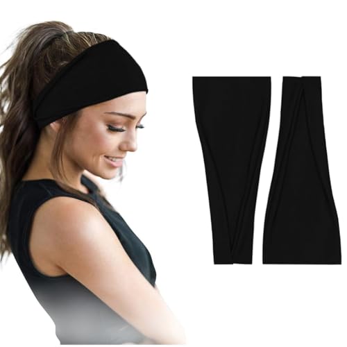 Generic - عصابات رأس عريضة من القطن للنساء والرجال، 95% قطن، غير قابلة للانزلاق، لأي رياضة، صالة الالعاب الرياضية، السفر، مثالية للارتداء اليومي. (2 × اسود، مقاس واحد)