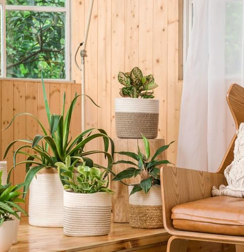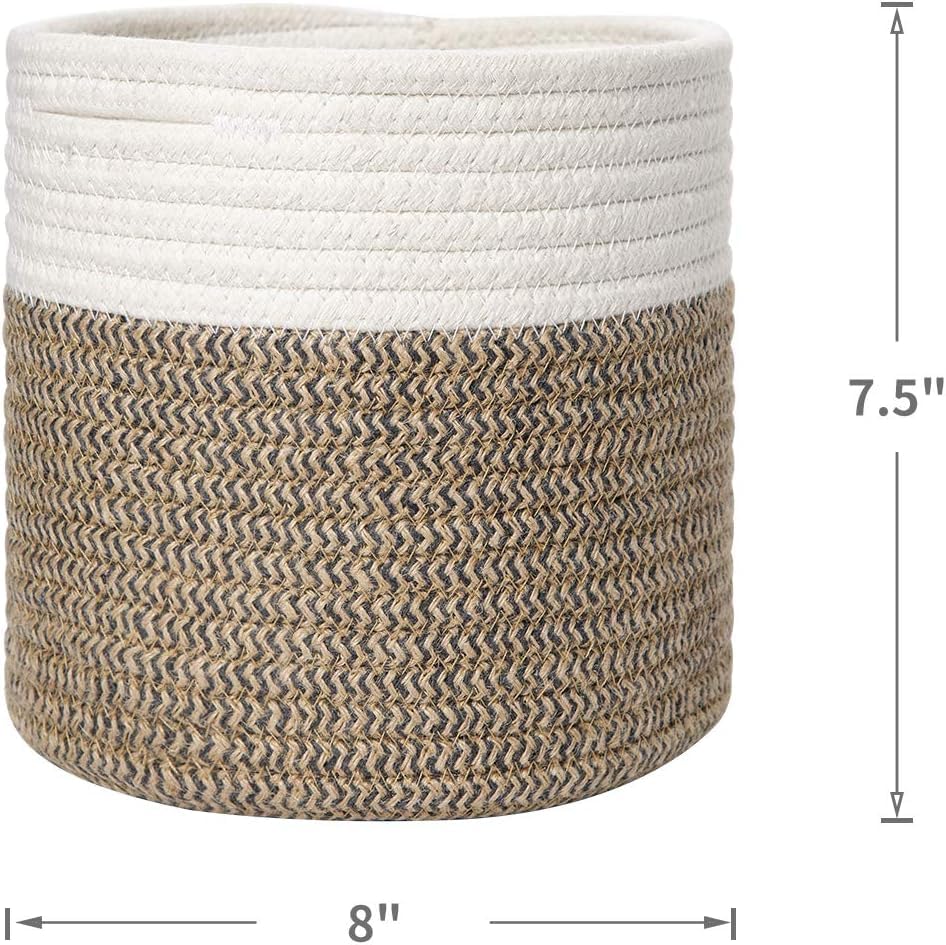 - Size: 8"(L) ×8"(W) x 7.5"(H), Best fits 7" plant pot or less, and the height of flower container lower than 7" is better. Adorable size woven storage bin is perfect for multipurpose use in different places. Pot and plants are not included in the basket. If you have any questions about the size, you can consult us at any time. If you have any questions about the received the goods, you can also contact us at any time. We will deal with it for you as soon as possible.