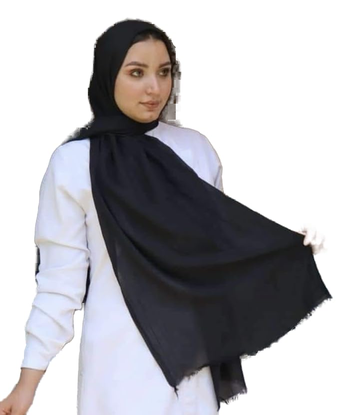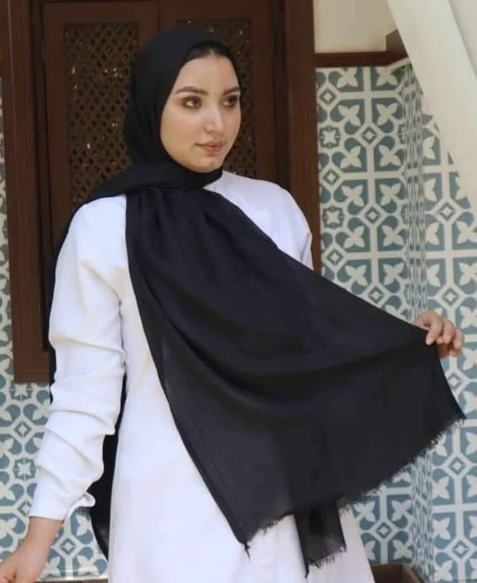 Generic - حجاب قطن كتان، شال أسود أنيق، طرحة نسائية عصرية