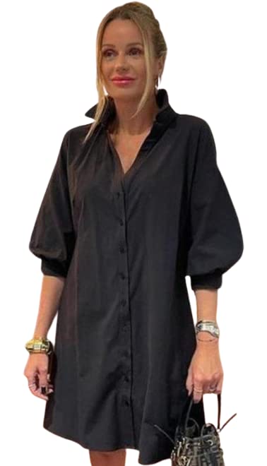 Generic - فستان قطن بقصة قميص بأكمام منفوخة