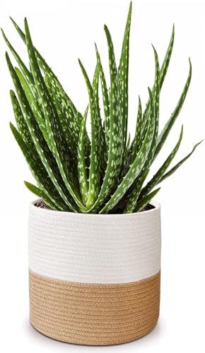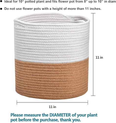 Generic - سلة نباتات من الحبال القطنية لاصيص النباتات / الزهور مقاس 10 انش، سلة منسوجة، سلة تخزين منظمة لديكور المنزل العصري، 11 انش × 11 انش (بني)