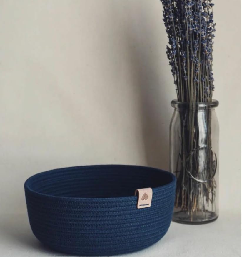 Generic - وعاء سلة تخزين من الحبال القطنية، ازرق كحلي، حاوية ديكور دائرية لتنظيم المنزل