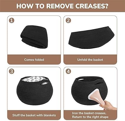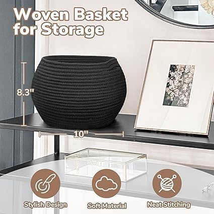 Generic - سلة تخزين من الحبال القطنية، وعاء دائري منسوج، حاوية مزخرفة لغرفة المعيشة - أسود