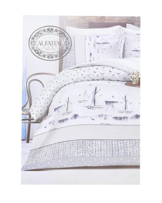 Generic - طقم ملاية قطن 3 قطع مقاس 240 × 220 سم - ابيض و كحلي