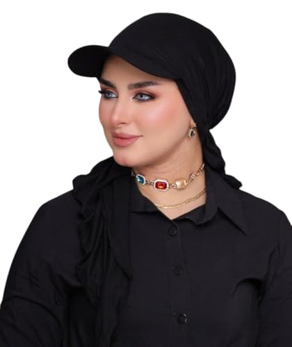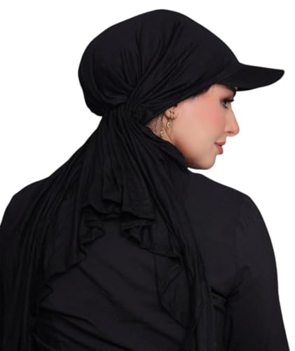 Generic - حجاب رياضي قطني مع كاب، أسود، قطعة واحدة جاهزة للارتداء