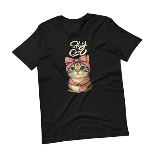 Generic - تي شيرت قطن للنساء، تيشرت قطن ابيض، قميص نصف كم، تصميم قطة - ابق باردا، هدية لها / له
