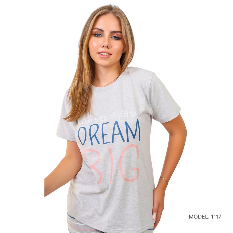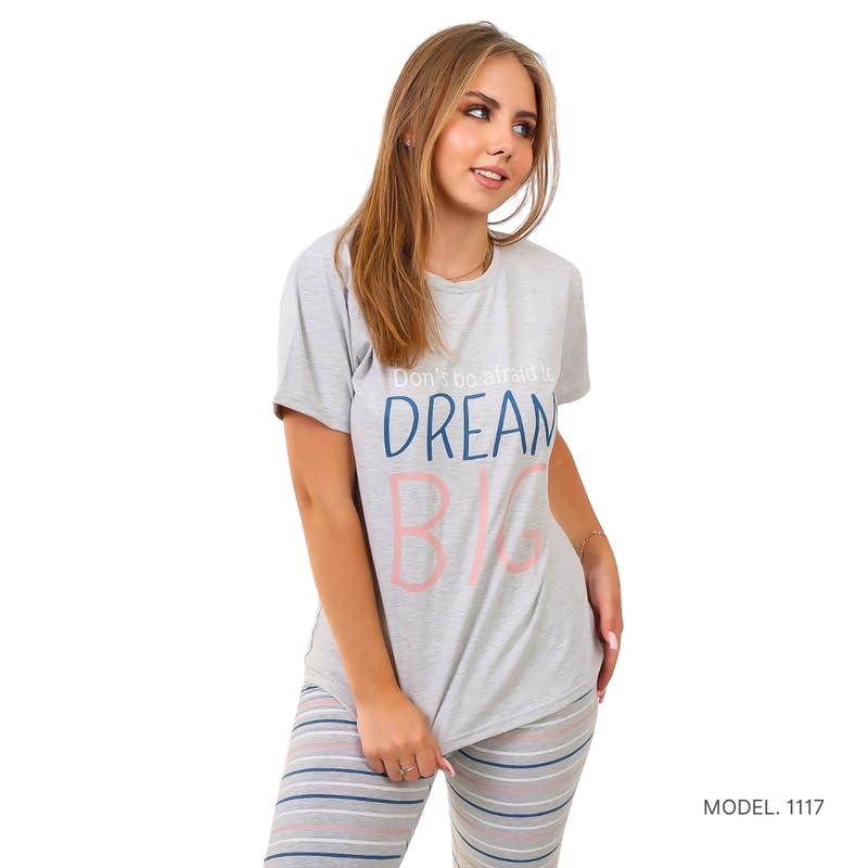 Cotton Zone - كوتون زون طقم ملابس منزلية للنساء - بنطلون ناعم وقميص قصير الاكمام - PL1117
