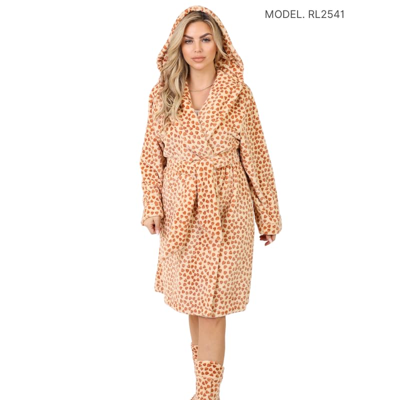 Cotton Zone - كوتون زون روب صوف بولار بغطاء للرأس وشبشب للنساء - مقاس - RL2541