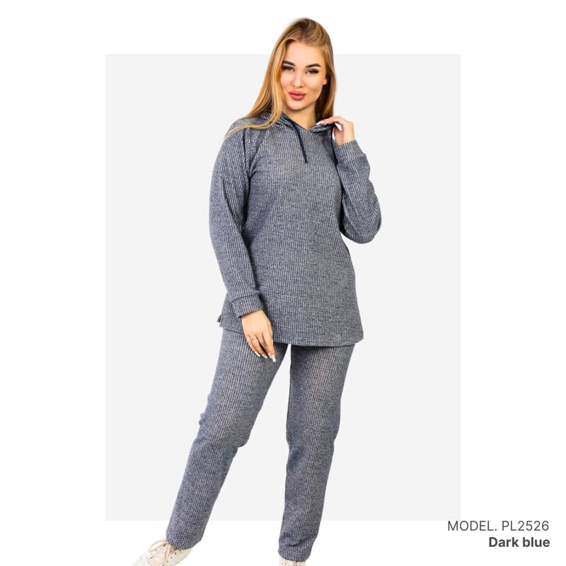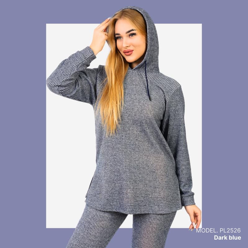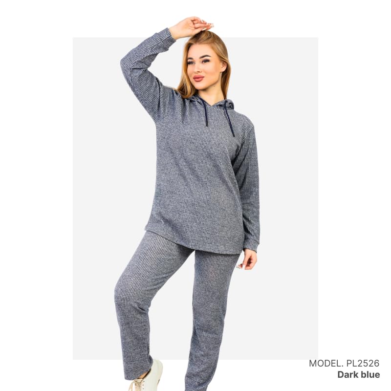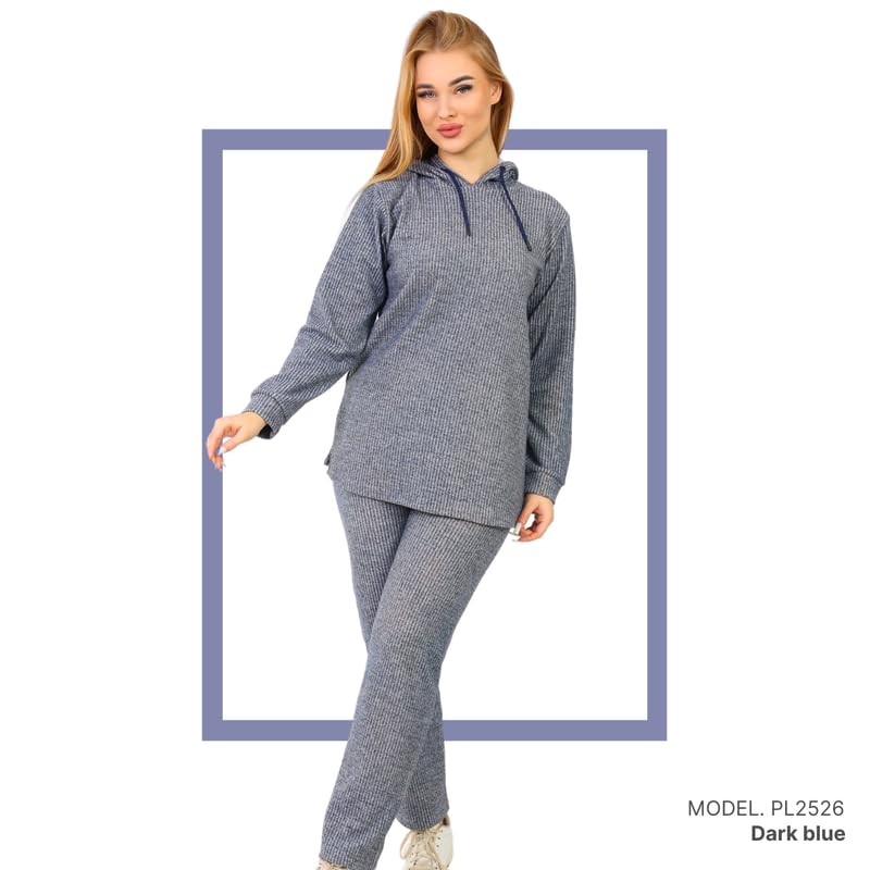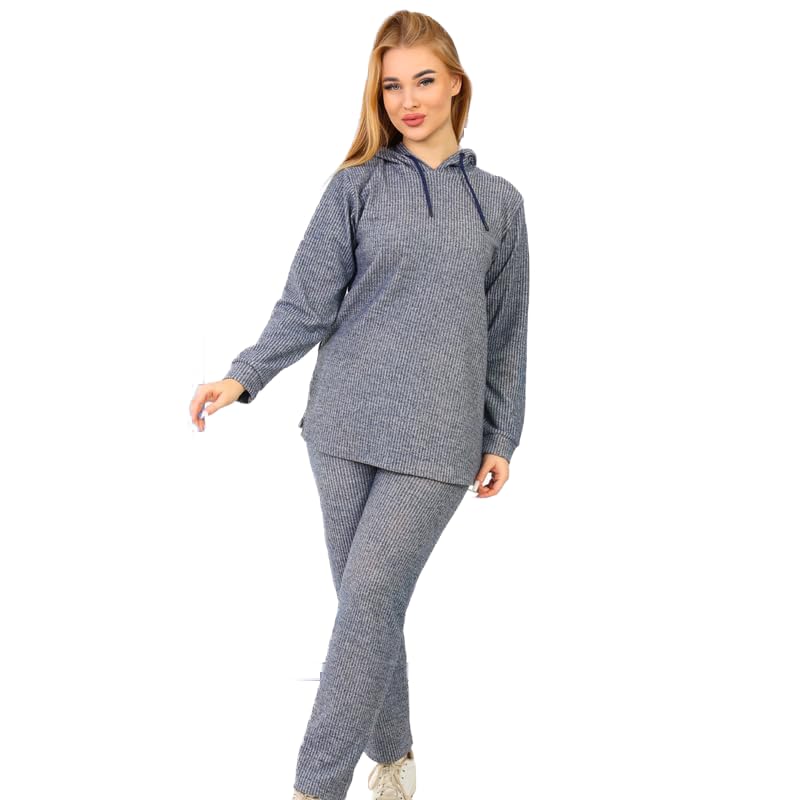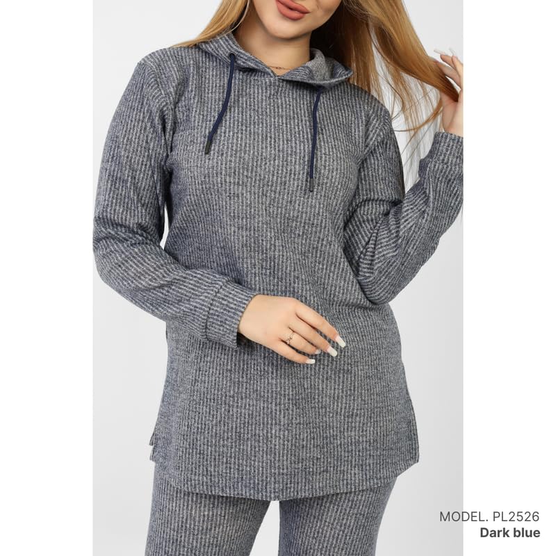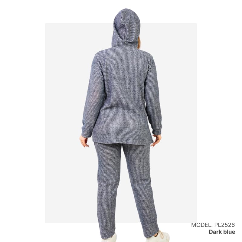 Cotton Zone - بيجامة للنساء من 2 قطعة من كوتون زون: سترة بغطاء للرأس بأكمام طويلة + بنطلون (صوف جاكار) - المقاس - PL2526