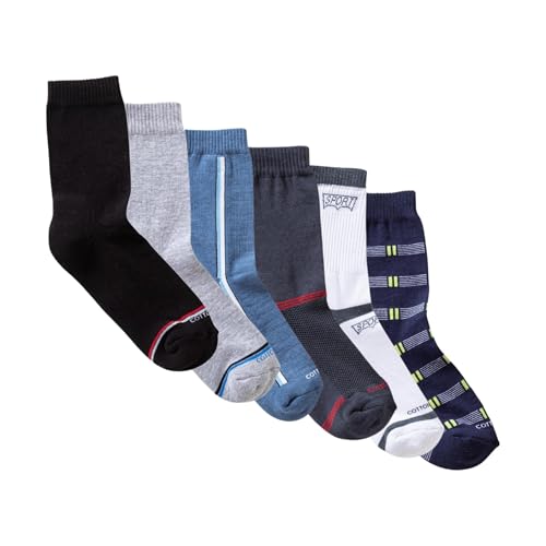 Cottonil - شرابات رياضية قطنية بطول متوسط مبطنة جزئيا من قطونيل، عبوة بتصميمات متعددة، 6 قطع