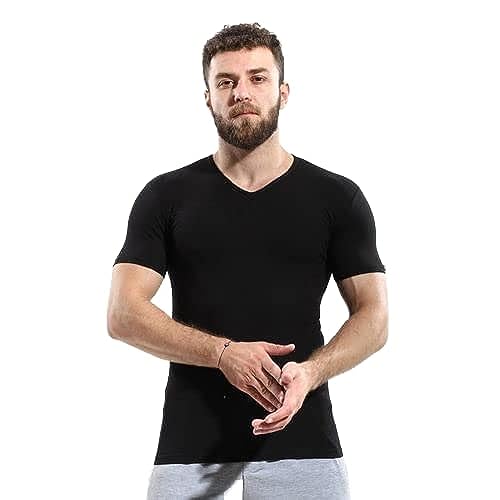 Cottonil - فانلة مرنة برقبة على شكل حرف V واكمام قصيرة للاولاد من قطونيل، اسود، مقاس 6، S