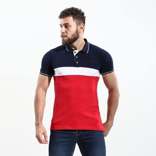 Cottonil - تيشرت بولو للخروج بياقة مطوية للاسفل للاولاد من قطونيل، ازرق كحلي واحمر وابيض، مقاس 3، M