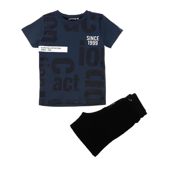 Cottonil - قطونيل طقم بيجامة قطن مكون من تيشرت صيفي وشورت للاولاد