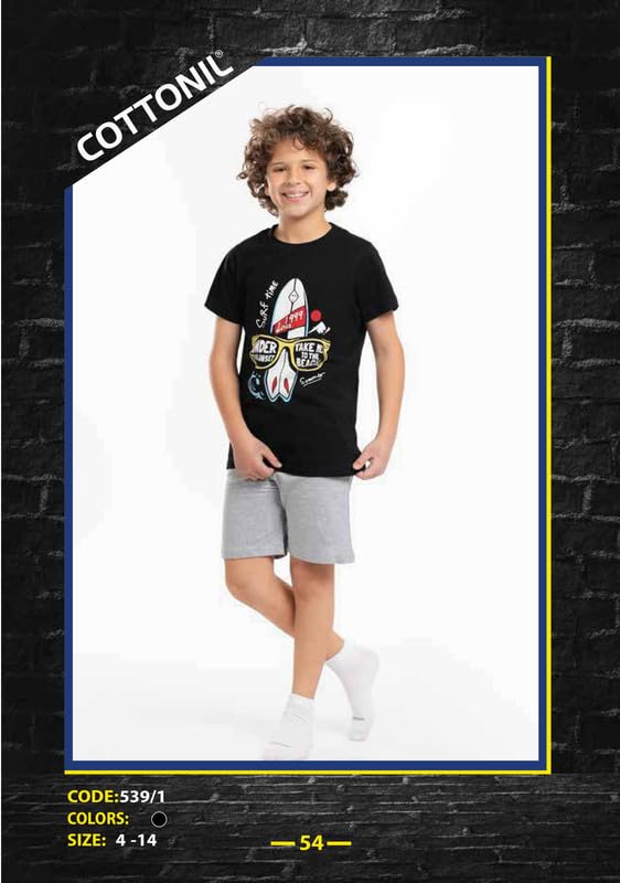 Cottonil - قطونيل طقم بيجامة صيفية من القطن مكون من تيشرت وشورت للاولاد