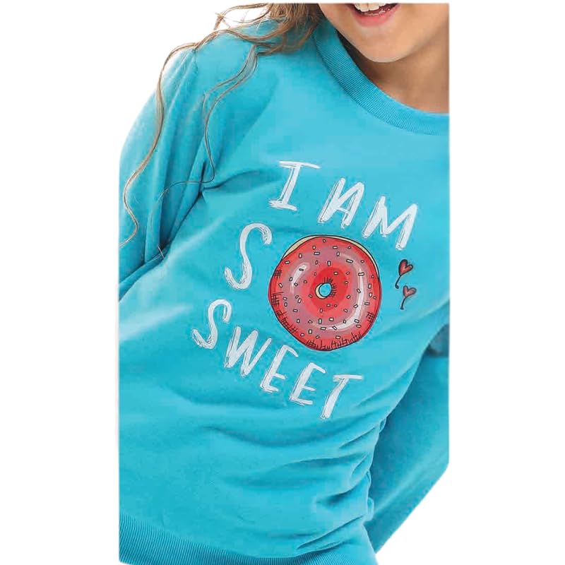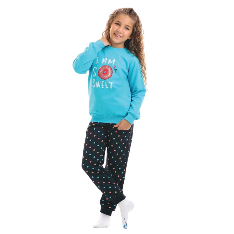 Cottonil - قطونيل طقم بيجامة نوم للبنات من القطن مكون من قميص جميل وبنطلون - لعمر 12 سنة لون ازرق